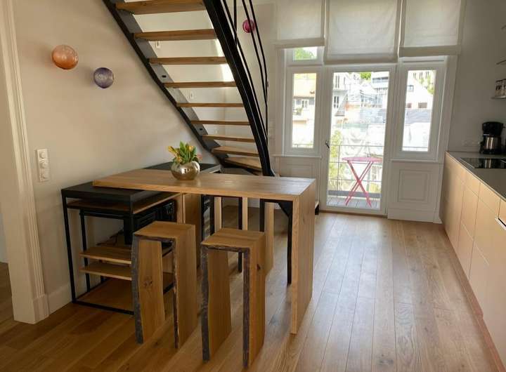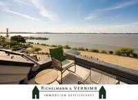 Über das 1. Obergeschoss und Dachgeschoss, erstreckt sich eine großzügige Maisonettewohnung, die neben dem Wohn- und Essbereich sowie der Küche, insgesamt vier weitere Zimmer und drei Bäder bietet. Absolutes Highlight ist die Dachterrasse mit verglastem Geländer, von der sich ein unvergleichbarer Ausblick auf das Wasser und die vorbeifahrenden Schiffe bietet. Nicht zu vergessen, der Blick gen Norden, zum Hanggebiet mit seinem besonderen Flair. Weiterhin bietet diese Wohneinheit einen hochwertigen Kamin und eine maßangefertigte Sauna innerhalb eines der Badezimmer.