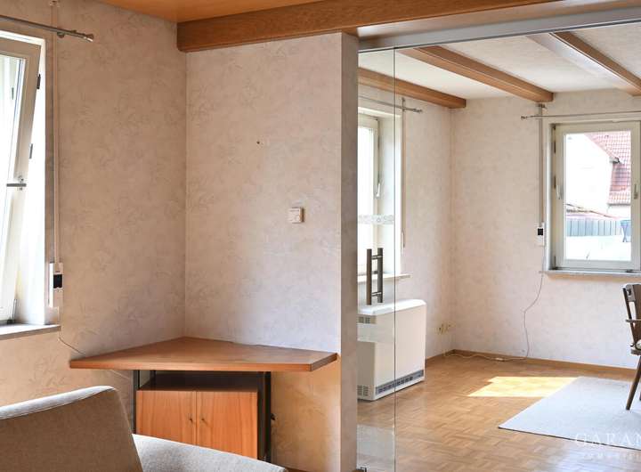 Hier kommt ein Zweifamilienhaus zum Verkauf. Es steht seit kurzem leer, ist noch nicht ganz geräumt und wartet bereits auf neue Bewohner, die wieder Leben hereinbringen.