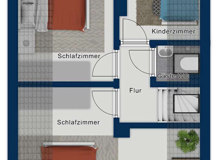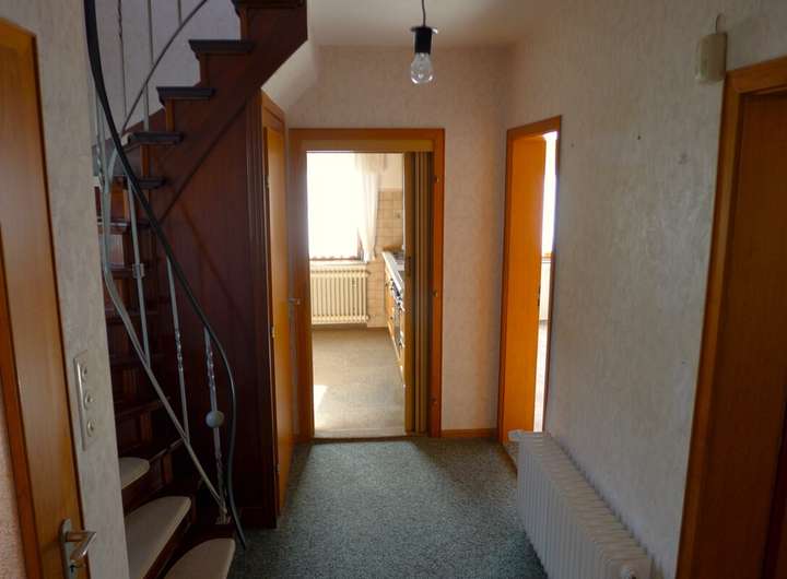 Im Erdgeschoss erwarten Sie ein Wohnzimmer mit direktem Zugang zum Wintergarten und Garten, ein Esszimmer, eine Küche sowie ein Badezimmer. Der zentrale Hausflur verbindet alle Räume miteinander und führt sowohl in den Keller als auch über die Treppe ins Dachgeschoss. Hier stehen Ihnen ein Schlafzimmer, zwei weitere Zimmer sowie ein WC zur Verfügung.