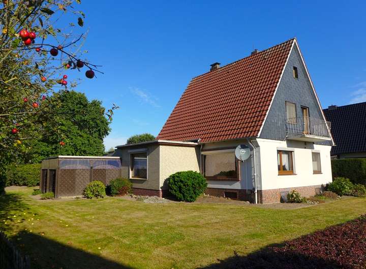 Dieses Einfamilienhaus aus dem Jahr 1965, ergänzt durch einen Anbau aus 1974, befindet sich auf einem großzügigen Grundstück von 812 m² und bietet insgesamt fünf Zimmer, einen Wintergarten sowie einen weitläufigen Garten.