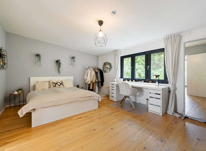 Die Ausstattung dieser Immobilie überzeugt durch edles Parkett und elegante Fliesen, die ein zeitloses Ambiente schaffen. Zwei Terrassen, ein Balkon und ein gepflegter Garten laden zum Verweilen ein. Für zusätzlichen Komfort sorgen eine elektrische Markise, elektrische Lamellen, dreifachverglaste Fenster sowie eine moderne Fingerprint Tür. Eine Videoüberwachung gewährleistet ein hohes Maß an Sicherheit. Die Fußbodenheizung bietet behagliche Wärme, während eine Luft Wasser Wärmepumpe und eine Photovoltaikanlage nachhaltiges Wohnen auf höchstem Niveau ermöglichen. Ein Carport und ein zusätzlicher Stellplatz runden das Angebot ab.