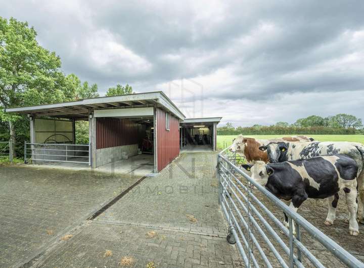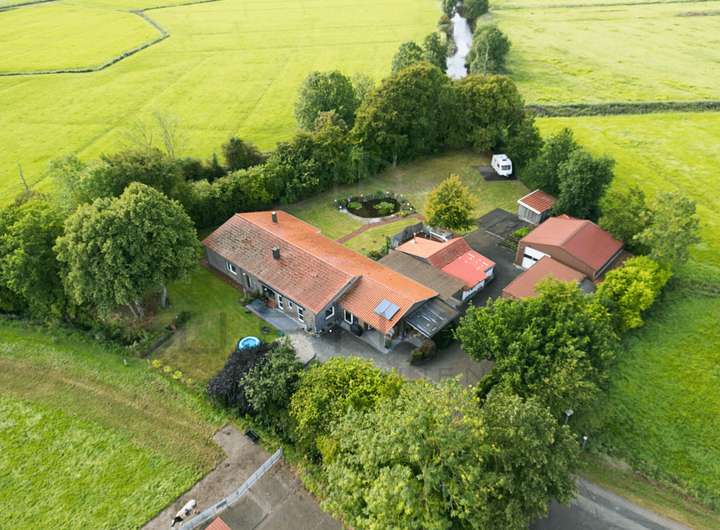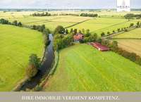 • Grundstücksfläche: 5 Flurstücke, insgesamt ca. 35.753 m² (davon ca. 3.716 m² Hof- und Gebäudefläche, Rest Grünland & Graben)