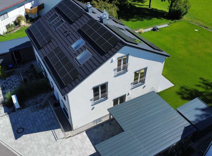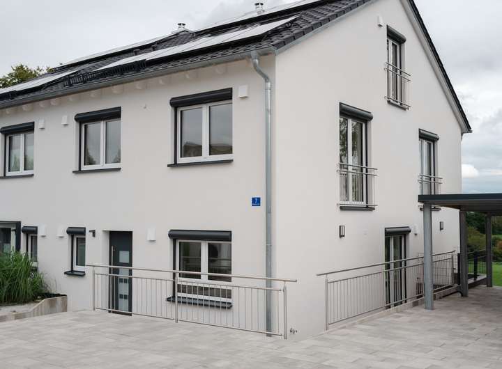 Zum Verkauf steht eine moderne, bezugsfertige Doppelhaushälfte am Ortsrand von Windach. Auf dem Grundstück befinden sich ein Carport sowie zwei Stellplätze. Das Haus bietet eine Wohnfläche von ca. 189 m² und eine zusätzliche Nutzfläche von 28,82 m². Es wurde im energiesparenden KfW-55-Standard errichtet und ist mit einer Luft-Wärmepumpe, Fußbodenheizung und Photovoltaikanlage ausgestattet.