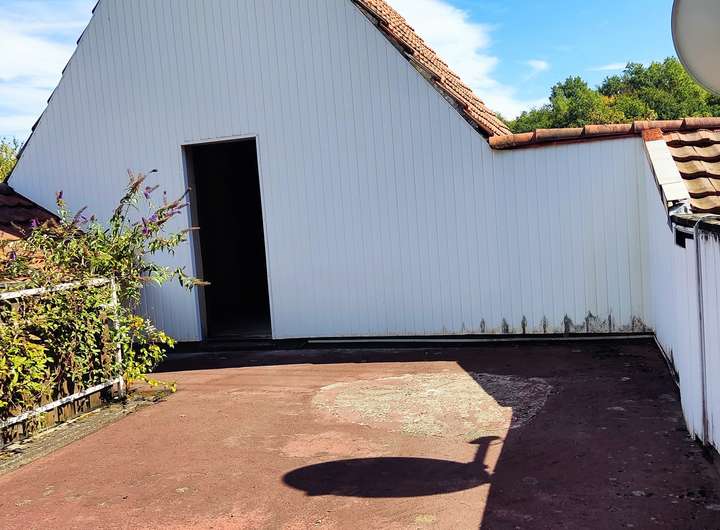 Sie erhalten helle Wohnräume, Terrasse im EG sowie Dachterrasse im DG. Der große Garten mit Gartenhaus und Schuppen lädt zum Spielen, Entspannen und Gärtnern ein.