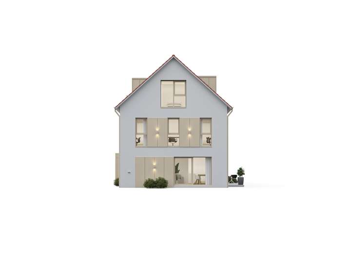 Das Erdgeschoss eröffnet Ihnen einen großzügig gestalteten Wohn-, Ess- und Kochbereich, der durch seine südwestliche Ausrichtung den ganzen Tag über mit viel Licht durchflutet wird. Die offene Raumgestaltung verbindet Kochen, Essen und Wohnen auf harmonische Weise und schafft einen zentralen Treffpunkt für die ganze Familie. Bodentiefe Fenster sorgen nicht nur für Helligkeit, sondern eröffnen auch den direkten Zugang auf die sonnige Südterrasse. Hier lässt sich der Blick in den eigenen Garten genießen – ein idealer Rückzugsort für entspannte Stunden im Freien. Abgerundet wird das Erdgeschoss durch ein modernes Gäste-WC, einen funktionalen Technikraum sowie eine durchdachte Garderobenlösung, die zusätzlichen Komfort bietet.