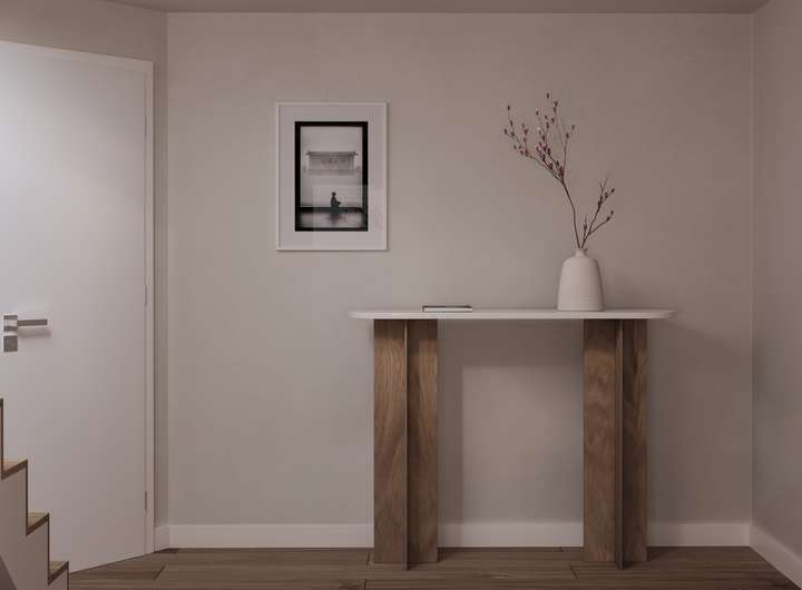 Bei dieser stilvollen Immobilie handelt es sich um einen in Massivbauweise erstellten Neubau von HOMEZ, der sich über vier Etagen erstreckt. Wir haben ein wunderschönes Reihenhaus mit viel Aufmerksamkeit für Details, Licht und Atmosphäre geschaffen. Die Formen und Materialien der Inneneinrichtung strahlen Ruhe und Schlichtheit aus und vereinen Funktionalität mit klaren Linien.