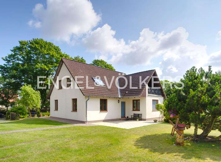 Dieses gepflegte Einfamilienhaus aus dem Jahr 1996 bietet auf ca. 172m² Wohnfläche und einem ca. 3.192 m² großen Grundstück ein komfortables und idyllisches Wohnambiente. Im Erdgeschoss empfängt Sie eine großzügige und helle Diele, von der aus Sie alle Räumlichkeiten erreichen können. Von der Küche aus gelangen Sie über den Essbereich in das helle Wohnzimmer, das durch einen attraktiven Erker besticht. Vom Wohnzimmer aus treten Sie direkt auf die Terrasse, die zum Entspannen im Freien einlädt. Im Erdgeschoss befinden sich außerdem zwei Schlafzimmer und ein Badezimmer mit Wanne. Über die Treppe in der Diele erreichen Sie die weitläufige Galerie im Dachgeschoss, die vielfältige Gestaltungsmöglichkeiten bietet. Hier finden Sie ein weiteres Zimmer und ein Badezimmer. Von der Galerie aus gelangen Sie auf die Loggia, von der aus Sie eine schöne Aussicht auf die Boddenlandschaft haben. Sowohl die Loggia als auch die Terrasse sind nach Süden ausgerichtet und garantieren somit viele Sonnenstunden. Das Haus verfügt über doppelt verglaste Holzfenster, die im Jahr 2017 mit Aluminium verkleidet wurden. Der großzügige Dachboden dient als zusätzlicher praktischer Stauraum. Auf dem Grundstück stehen eine Garage und ein Carport mit jeweils zwei PKW-Stellplätzen zur Verfügung. Eine massive und überdachte Grillterrasse lädt zu geselligen Abenden ein. Auf dem Garagendach befindet sich eine Photovoltaikanlage mit 9,75 kWp, die gemäß Vergütungsvertrag jährliche Einnahmen von ca. 700 € generiert. Besonders hervorzuheben sind die Wallbox im Carport und der Glasfaseranschluss im Haus, welche die moderne Ausstattung unterstreichen. Im Jahr 2021 wurde eine neue Heiztherme installiert, der Gastank ist erdverbaut. Genießen Sie die Ruhe und Idylle, umgeben von viel Natur, und den herrlichen Blick auf den Greifswalder Bodden.