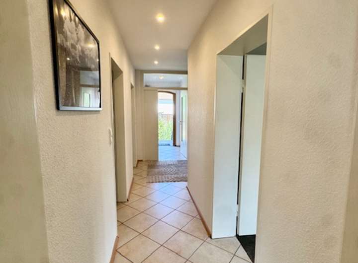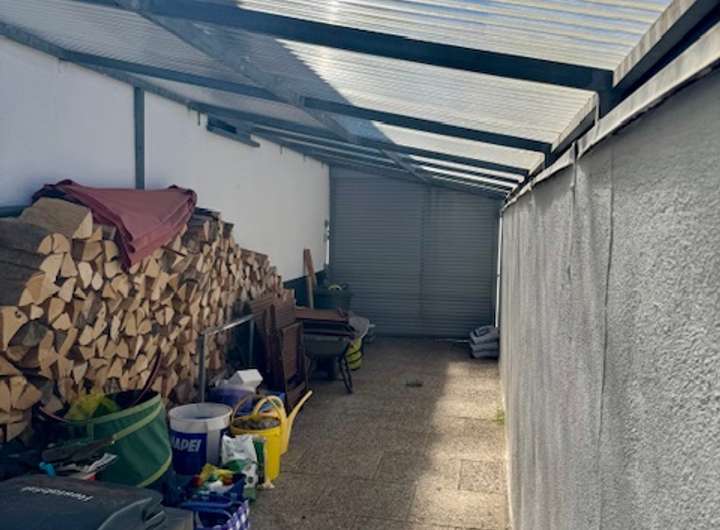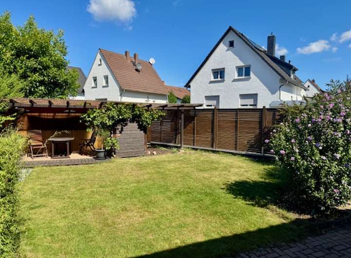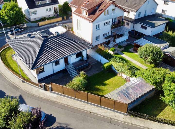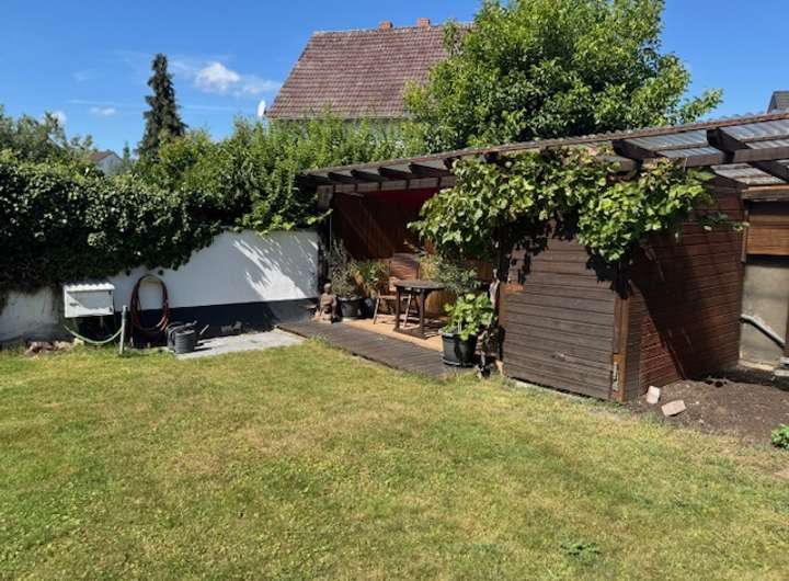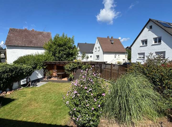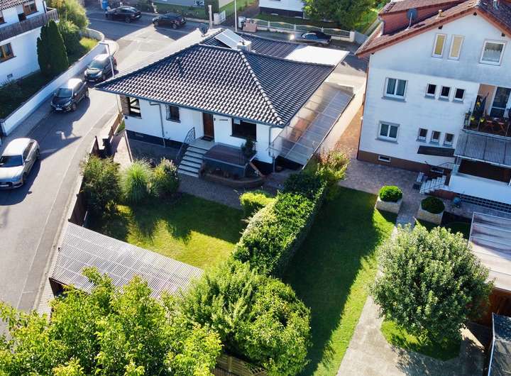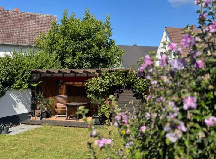 Der gepflegte Garten mit überdachtem Freisitz lädt zum Entspannen ein. Zusätzlich gibt es eine kleine Terrasse an der Frontseite. Zwei PKW-Stellplätze, eine Motorradgarage sowie ein Nebenbereich komplettieren das Angebot. Die Ausrichtung des Hauses sorgt für sonnendurchflutete Räume und viel Licht.
