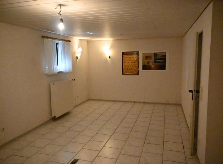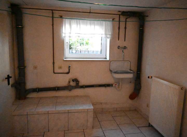 Der nicht ausgebaute Keller umfasst Kellerflur, Hausanschlussraum, Heizraum, Hauswirtschaftsraum, Vorratsraum und großzügigen Hobbyraum (35 m²). Alle Kellerräume sind gefliest und mit Putz an Wänden und Decken versehen.