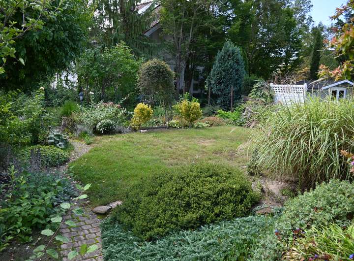 Eine geräumige Garage (Breite: 4.00 m bzw. 3,10 m breit und 7,52 m tief) mit elektrischer Toröffnung und ein gepflegter Garten komplettieren das freistehende Einfamilienhaus