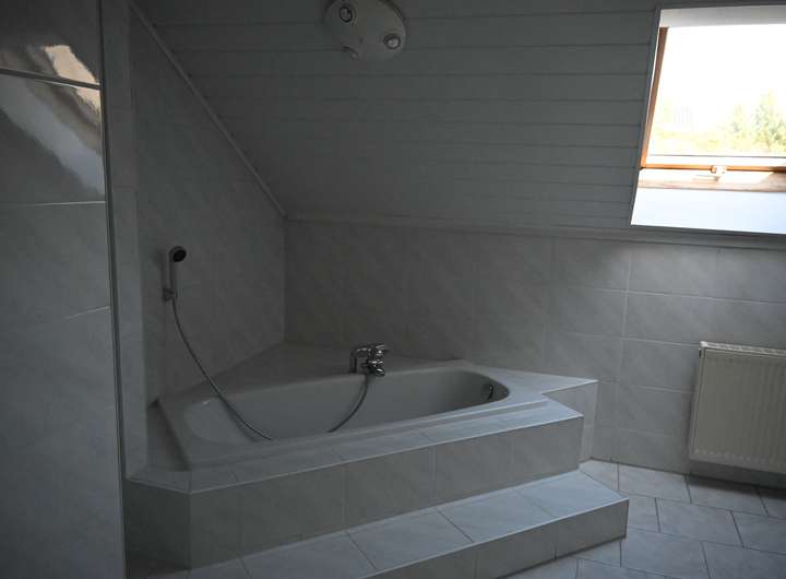 Im Dachgeschoß befinden sich die Galerie. Zimmer, Schlafzimmer und Ankleide und ein großzügiges Badezimmer (12 m²) mit Dusche, Badewanne und WC.