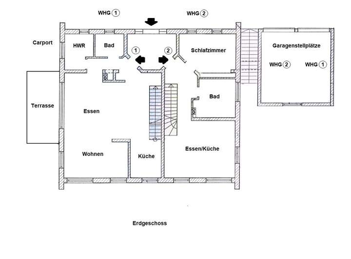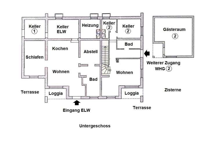 zusätzlichen, wohnlich ausgebauten Einheit unter der Garage.