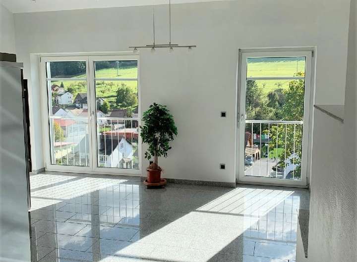 Zweite Wohnung (ca. 86 m²) – helle Räume, große Küche, zwei Bäder, Wohnzimmer mit Loggia und herrlicher Aussicht.