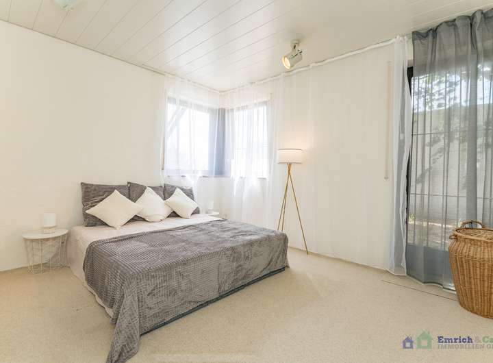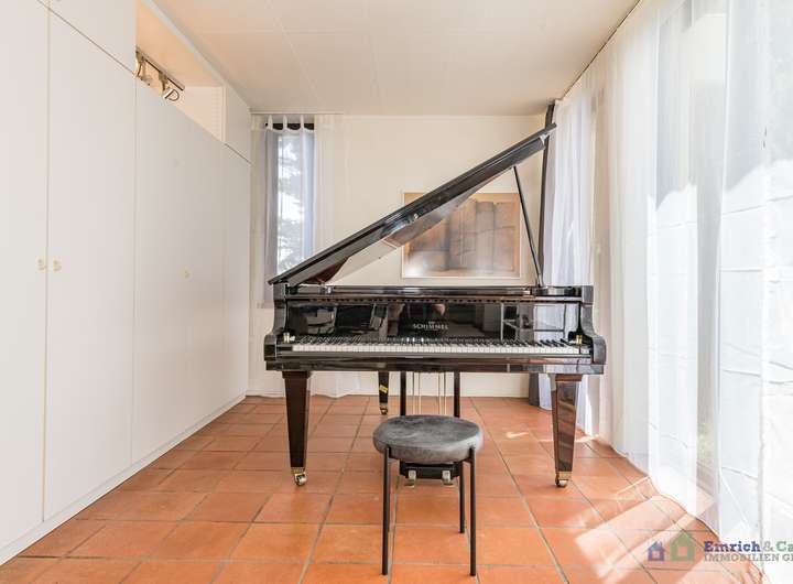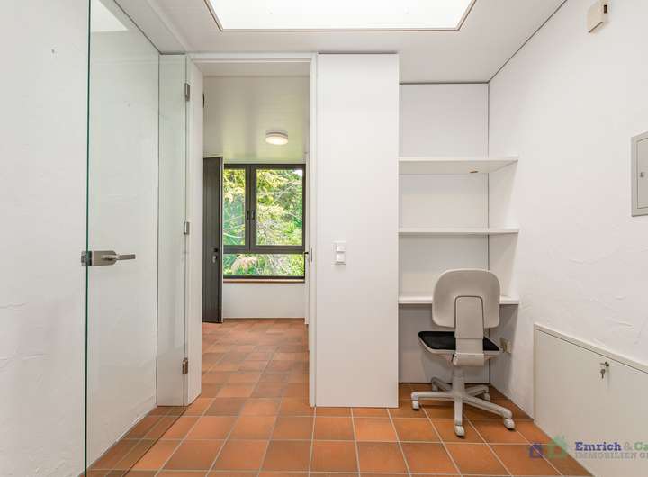Die etwa 50 m² große Einliegerwohnung, die separat von der Straße hinter dem Haus zugänglich ist, eignet sich alternativ auch hervorragend als Büro. Die Wohnung verfügt über einen eigenen Eingang, der für Privatsphäre und Unabhängigkeit sorgt. Die ruhige Lage und der Blick schaffen eine angenehme Arbeitsatmosphäre.