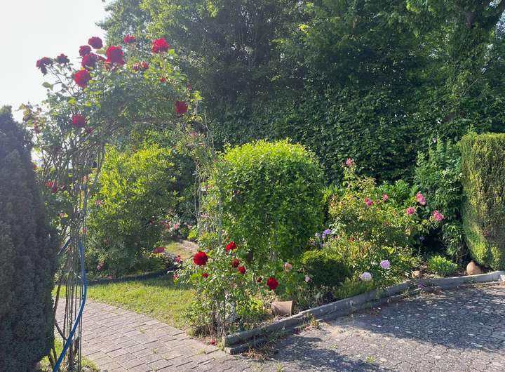 - Charmanter Rosengarten mit Sitzecke