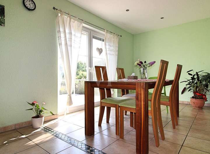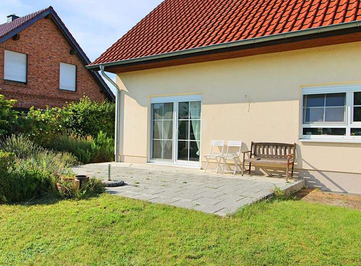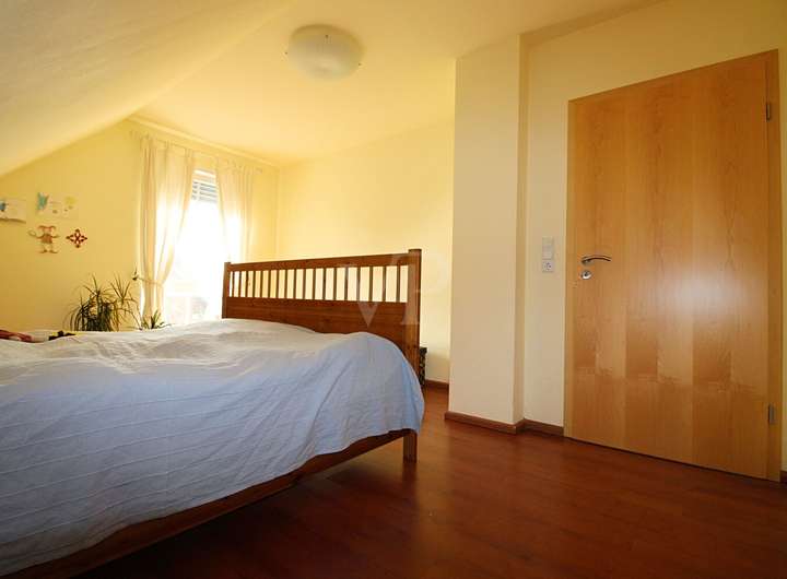 Der lichtdurchflutete Wohn- und Essbereich mit offener Küche öffnet sich zum Garten und schafft den perfekten Ort für gemeinsame Stunden mit Familie und Freunden. Die im Obergeschoss liegenden Schlafräume bieten ausreichend Rückzugsmöglichkeiten für Ihre Familie.