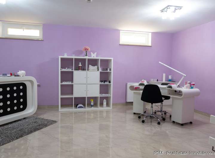 Der ausgebaute Keller wird aktuell als Kosmetikstudio genutzt und ist nicht in die Wohnfläche eingerechnet. Er kann jedoch problemlos als zusätzlicher Wohn- oder Hobbyraum genutzt werden.