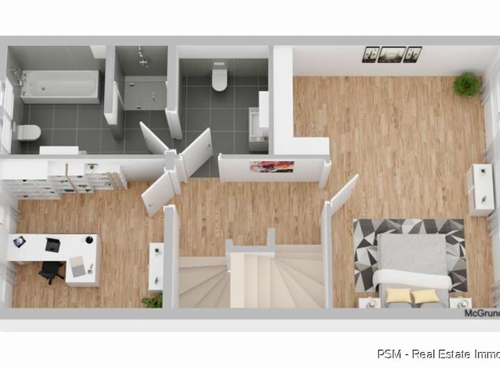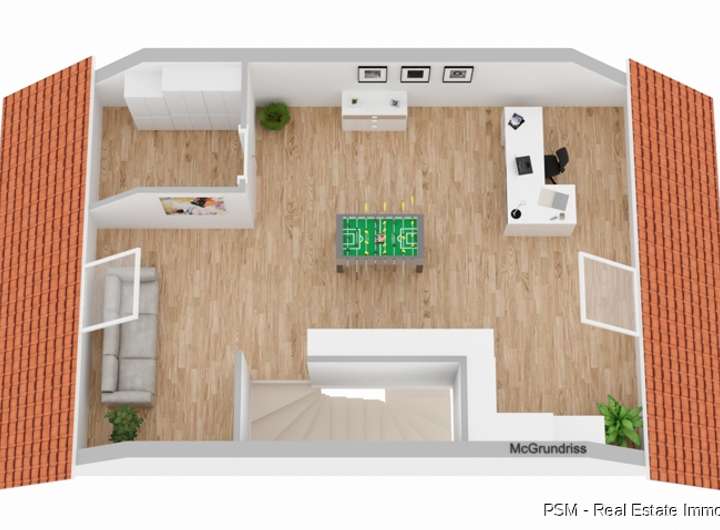 Ein Highlight des Hauses ist das großzügige Dachstudio im ausgebauten Dachgeschoss, das sich ideal als Büro, Spielzimmer oder Rückzugsort eignet.