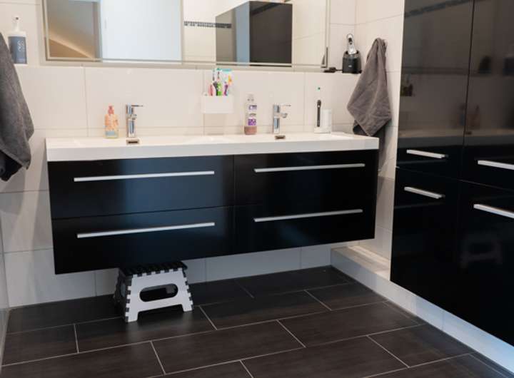 •Hochwertige Feinsteinzeugfliesen in allen Räumen
