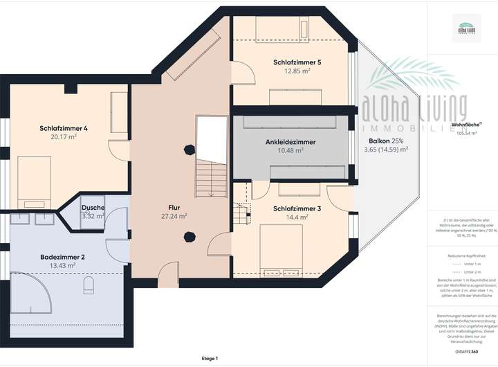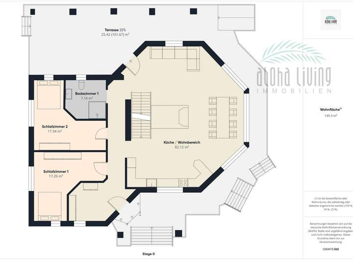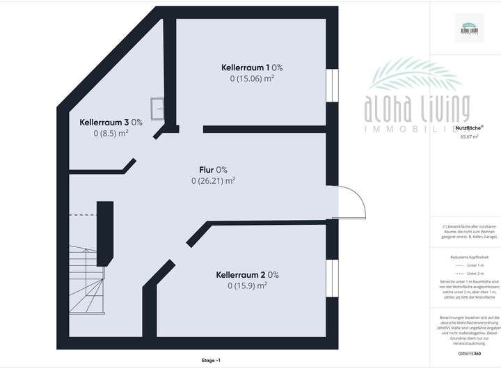 Alle Angaben sind ohne Gewähr und dienen als Erstinformation. Rechtsgrundlage ist der notarielle Kaufvertrag. Irrtümer und der Zwischenverkauf bleiben vorbehalten. Die im Exposé enthaltenen Informationen stammen vom Eigentümer bzw. Dritten und Aloha Living Immobilien® GmbH übernimmt hierfür keine Haftung. Eine Weitergabe des Exposés und der darin enthaltenen Informationen Bedarf unserer Zustimmung.