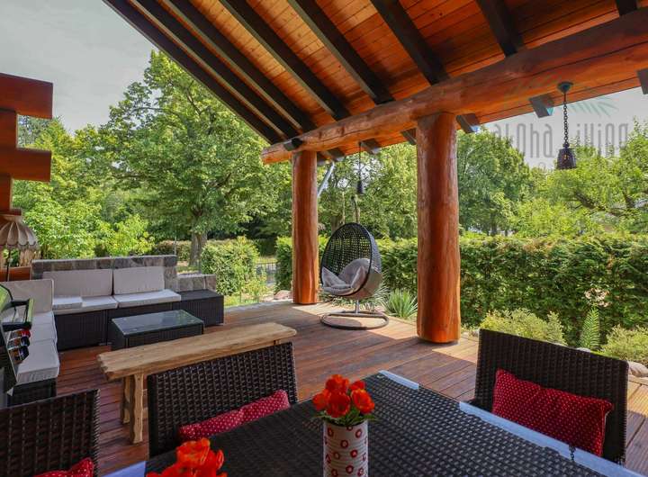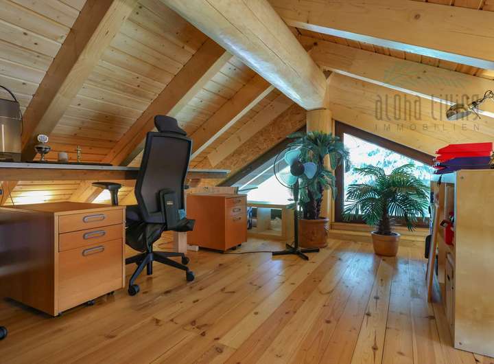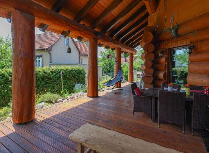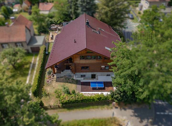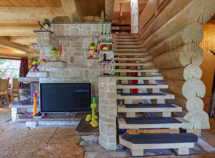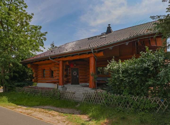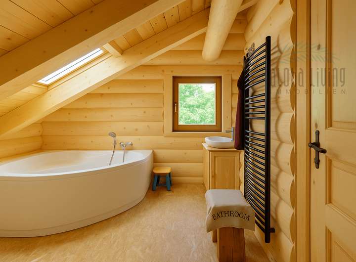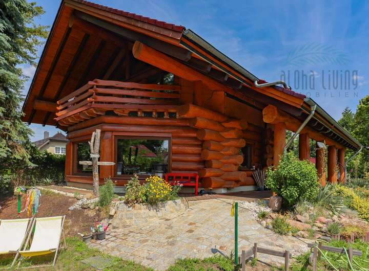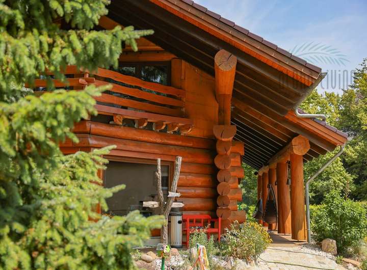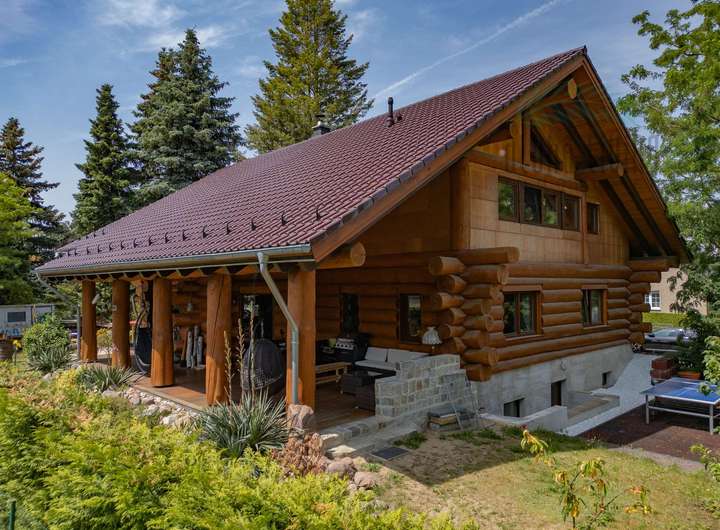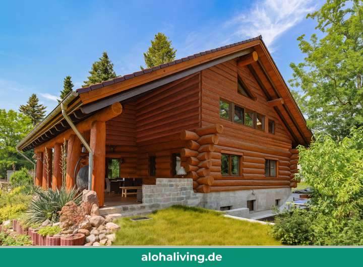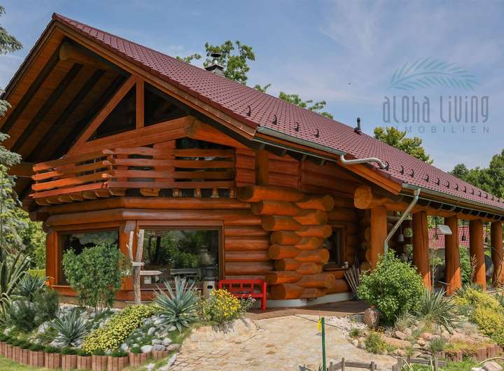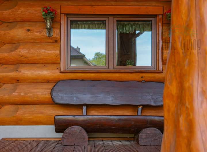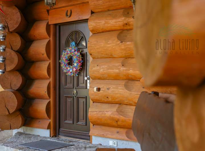 + eindrucksvolles, massives Naturstammhaus mit 265 m² Wohnfläche