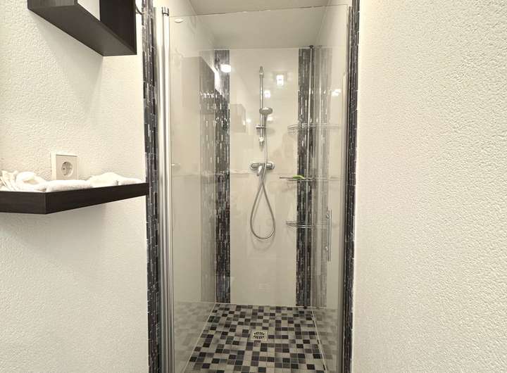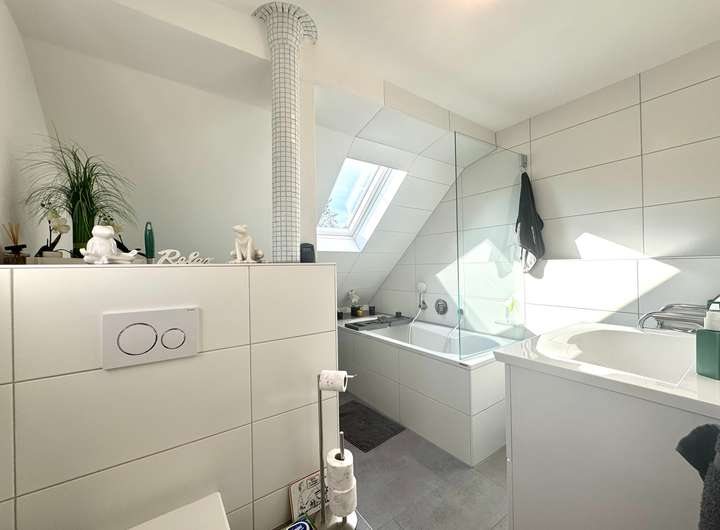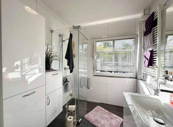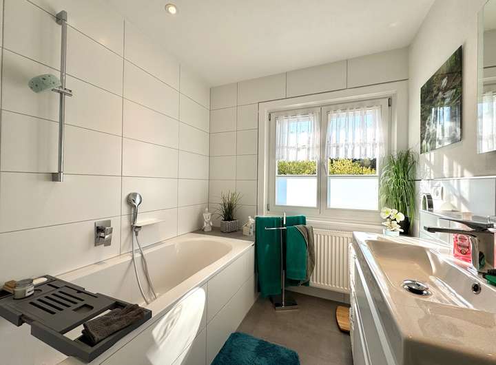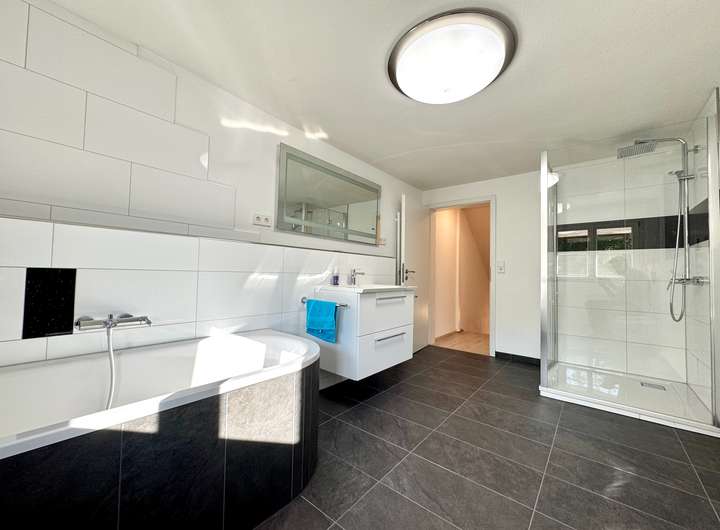 Großzügiges Badezimmer mit Dusche und Badewanne