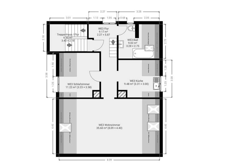 Dachterrasse (ca. 60 m², 25 % in WF berücksichtigt)