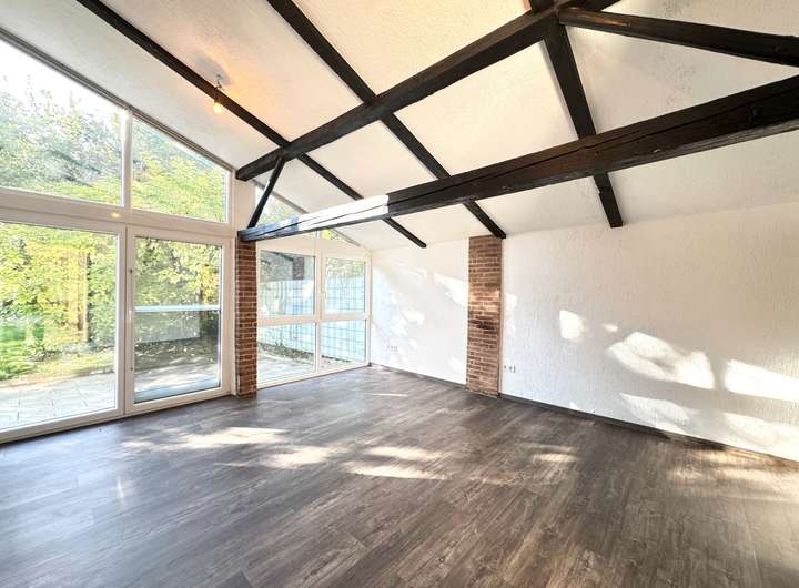 Das Einfamilienhaus besticht durch eine moderne Architektur, helle Räume und direkten Zugang zum Garten.