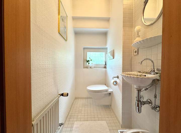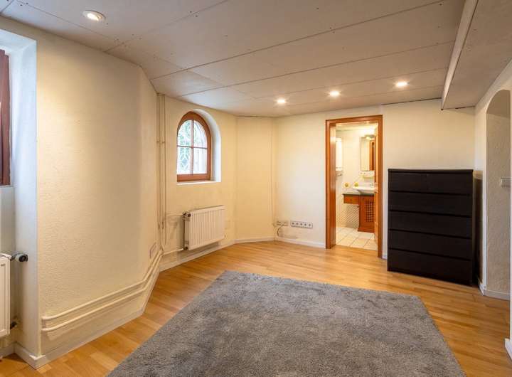Im Untergeschoss mit separatem Eingang finden Sie neben Waschküche und Keller auch Wohnraum (ca. 15 m²) mit Fenster und eigenem Badezimmer. Dieser Raum bietet vielfältige Nutzungsmöglichkeiten – ob als Fitnessraum, Spielzimmer, Büro - hier können Sie Ihrer Kreativität freien Lauf lassen.
