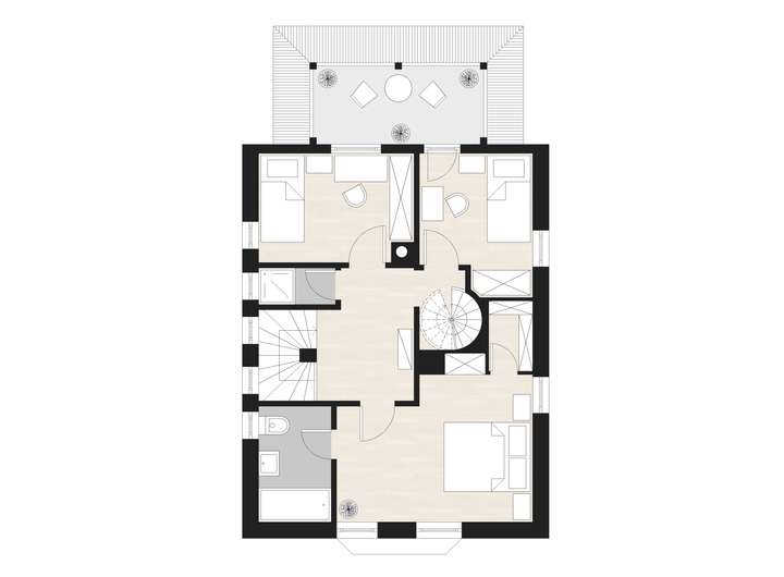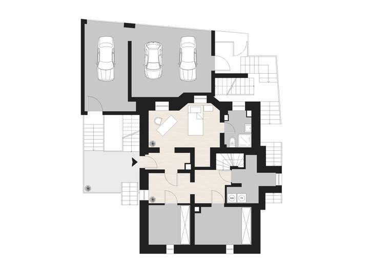 Ein weiterer Pluspunkt sind die drei Garagen, die sich direkt unterhalb des Hauses befinden und bequemen sowie sicheren Parkraum bieten. So starten Sie komfortabel in den Alltag.