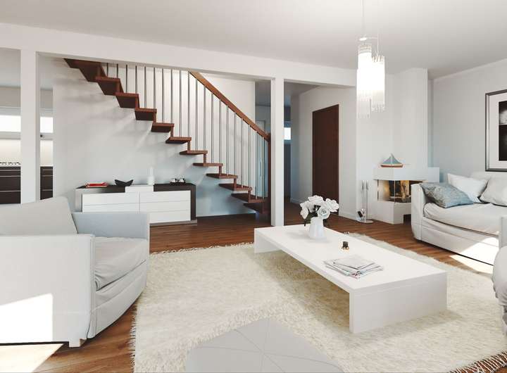 Zum Leistungsumfang des Hauses gehört u.a. die umweltfreundliche Wärmepumpe, eine Fußbodenheizung, die Bodenplatte und der Estrich in den Etagen.