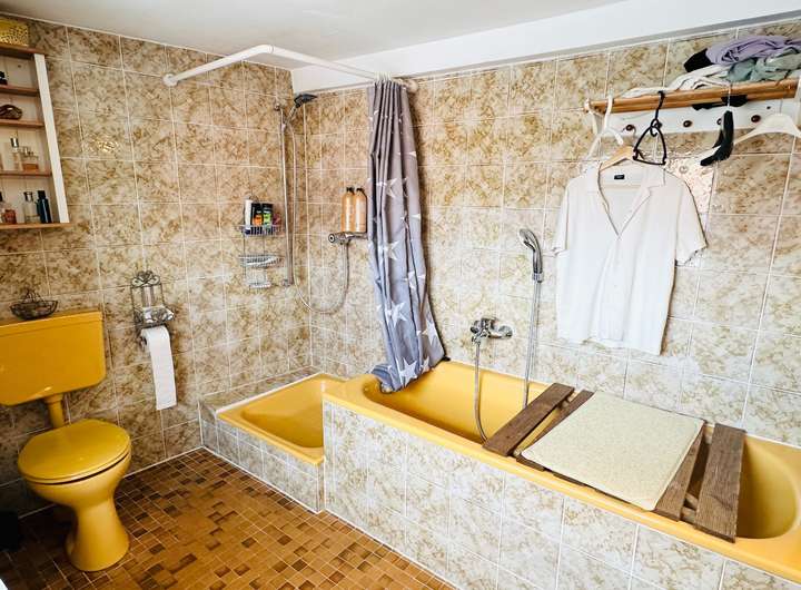 Das Haus teilt sich aktuell in eine Wohneinheit und eine Gewerbeeinheit, die beide solide und zuverlässig vermietet sind. Zusätzlich steht eine großzügige Wohnung mit ca. 120 m² zur Verfügung, die entweder selbst bezogen oder ebenfalls vermietet werden kann.