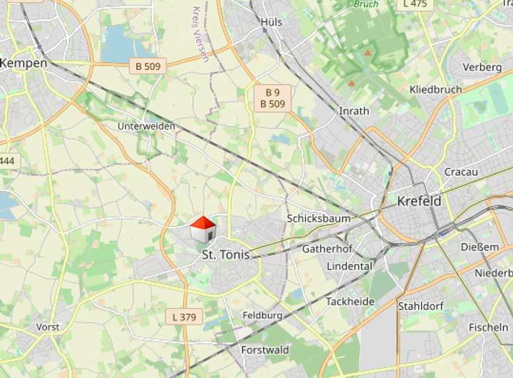 Zwischen der Großstadt Krefeld ( ca. 230.000 Einwohner ) und der Stadt Kempen ( ca. 34.000 Einwohner ).