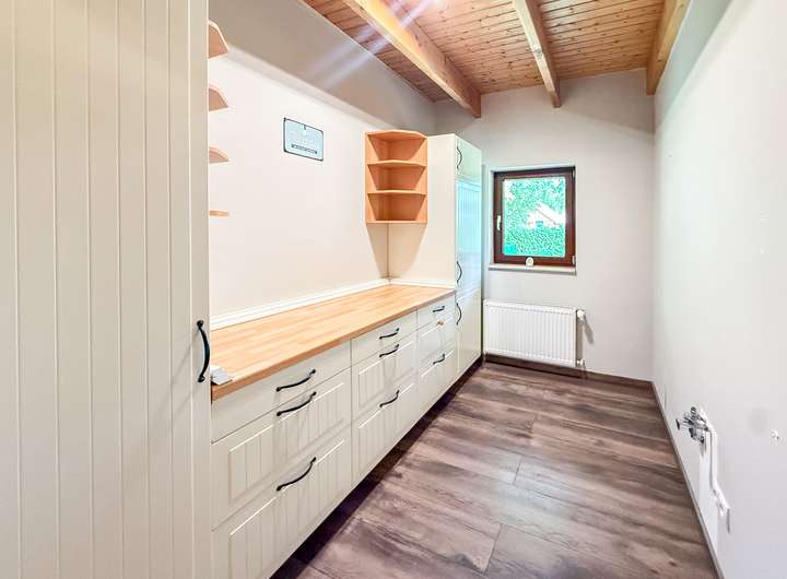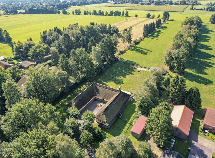 Dieses außergewöhnliche Reetdach-Haus in Hufeisenform präsentiert sich auf einem großzügigen, ca. 4.000 m² großen Grundstück mit südlichem Weitblick in ruhiger Lage von Gnarrenburg. Das im Jahr 2003 erbaute Anwesen überzeugt mit einer Wohnfläche von rund 250 m², einer durchdachten Raumaufteilung sowie einem einzigartigen Wohnambiente, das Tradition und Moderne auf besondere Weise vereint. Beim Betreten der Immobilie eröffnet sich ein durchdachtes Wohnkonzept auf einer Ebene: Sechs großzügige Zimmer, darunter ein weitläufiger Wohnbereich, drei Schlafzimmer, ein Gästezimmer sowie ein separates Arbeitszimmer, bieten vielfältige Nutzungsmöglichkeiten für Familien, Paare oder Eigennutzer mit Platzbedarf. Zwei stilvoll ausgestattete Bäder, eine moderne Küche sowie ein zusätzlicher Hauswirtschaftsraum runden den hohen Wohnkomfort ab. Besondere Details wie die südlich ausgerichtete Holzterrasse, ein angelegter Gartenteich, ein Räucherofen sowie ein charmantes Gartenhaus unterstreichen den exklusiven Charakter des Anwesens. Die Immobilie ist vollständig eingezäunt und bietet ein hohes Maß an Privatsphäre. Auch technisch präsentiert sich das Objekt in gepflegtem Zustand: Das Reetdach wurde erst kürzlich nachgedeckt, die Wärmepumpe stammt aus dem Jahr 2023, und die gesamte Ausstattung von isolierverglasten Holzrahmenfenstern bis zu den hochwertigen Bodenbelägen ist auf einem sehr guten Stand. Für zusätzlichen Raum sorgen eine Werkstatt, ein Heizungsraum sowie eine großzügige Garage mit elektrischem Tor. Damit eignet sich die Immobilie nicht nur zum Wohnen, sondern auch für Hobbys oder handwerkliche Tätigkeiten. Dieses Anwesen vereint großzügiges Wohnen, eine ruhige Lage und hochwertige Ausstattung zu einem einzigartigen Gesamtpaket. Es ist ideal für anspruchsvolle Familien, Paare oder Liebhaber besonderer Architektur, die Wert auf ein naturnahes, exklusives Zuhause legen.