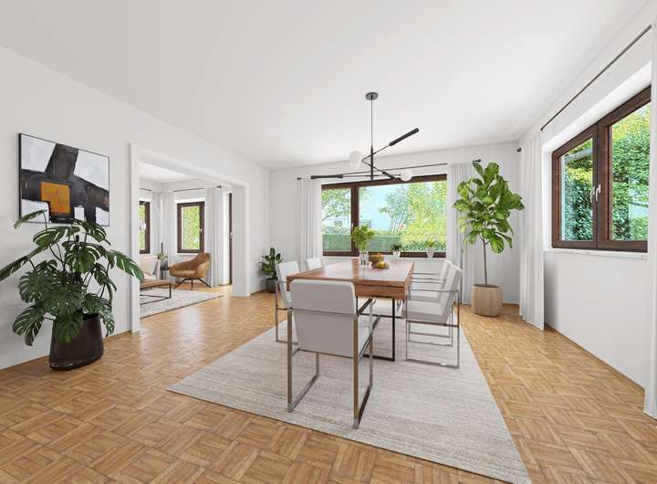 Ankommen, wohlfühlen, durchatmen - dieses massiv gebaute Zweifamilienhaus aus dem Jahr 1982 bietet alles, was das Herz begehrt. Es überzeugt durch seine großzügige Wohnfläche, den besonderen Schnitt und die idyllische Lage im beliebten Schmitten. Mit ca. 217 m² Wohnfläche bietet das Haus vielfältige Nutzungsmöglichkeiten - ob als Mehrgenerationenhaus, für die große Familie oder in Verbindung mit einer Einliegerwohnung zur teilweisen Vermietung. Das Grundstück umfasst ca. 1.022 m², ist komplett eingezäunt und begeistert mit seinem alten Baumbestand. Hier genießen Sie absolute Ruhe und Privatsphäre.
