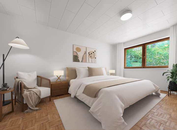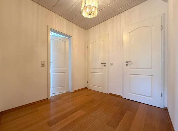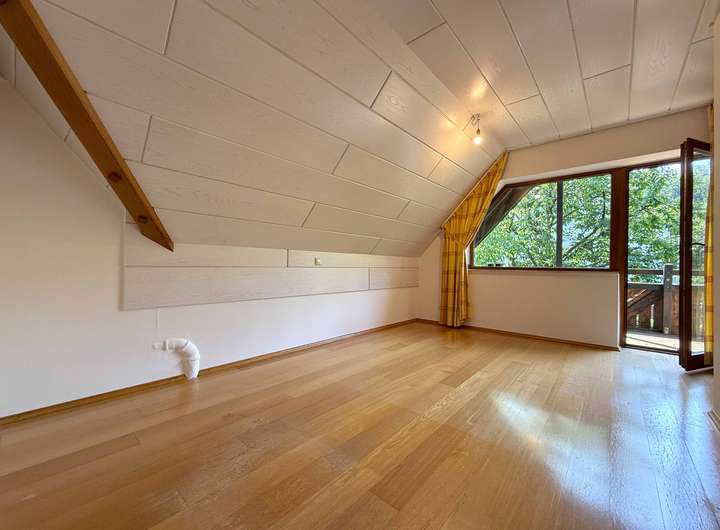 Die Einliegerwohnung im Dachgeschoss wurde 1999 neu angelegt und ist hell und zeitlos gestaltet. Hier warten drei Zimmer, ein Bad, eine Küche und eine Abstellkammer auf neue Bewohner. Auf dem ebenfalls nach Süden ausgerichteten Balkon genießen Sie entspannte Stunden im Freien.
