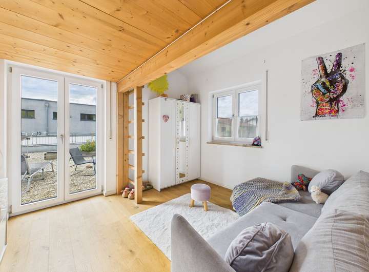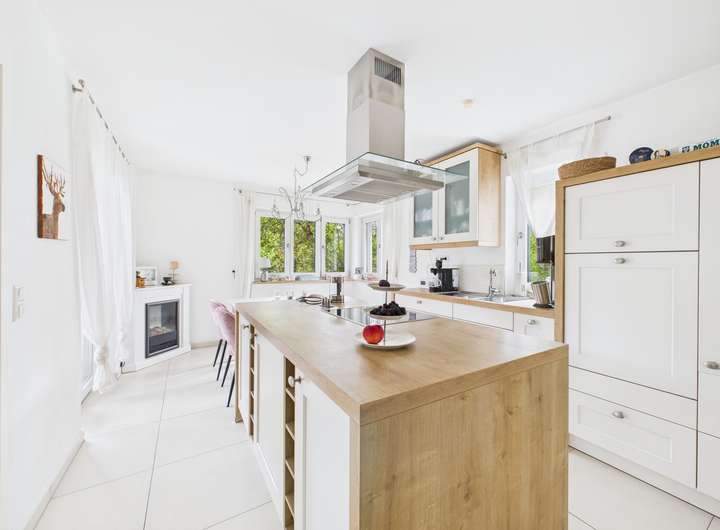 Drei Sonnenterrassen laden zu jeder Tageszeit zum Verweilen ein. Ob beim Frühstück im ersten Morgenlicht, beim Sundowner auf der Dachterrasse mit traumhaften Sonnenuntergängen oder beim entspannten Ausklingen des Abends im überdachten Freisitz – hier finden Sie zu jeder Jahreszeit Ihren Lieblingsplatz. Der offene Wohn- und Essbereich mit stilvollem Panorama-Kamin schafft ein Ambiente, das Behaglichkeit und Großzügigkeit perfekt verbindet.