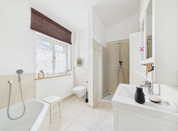 * Hochwertige Ausstattung mit Eichenparkett- und Designerfliesen