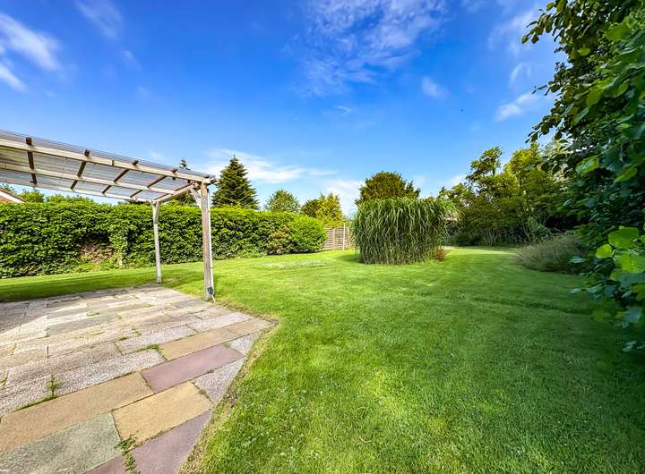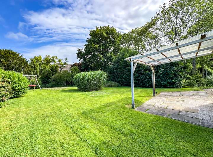 Ein echtes Highlight ist die überdachte Terrasse von 2023 – perfekt für entspannte Stunden im Freien. Der weitläufige Garten lädt zum Spielen, Gärtnern oder einfach zum Genießen ein. Ein kleiner Anbau eignet sich hervorragend als Werkstatt oder Geräteschuppen. Abgerundet wird das Angebot durch eine gepflasterte Einfahrt mit Platz für bis zu zwei Fahrzeuge.
