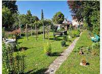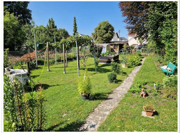 Das Anwesen ist vermietet. Nachdem 2 Häuser gebaut werden dürfen, kann den Mietern u.U. das Weiterwohnen in einem der beiden Häuser angeboten werden, mit Nutzung eines Teils des großen Westgartens.