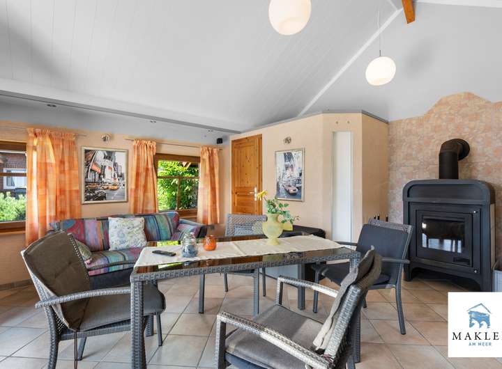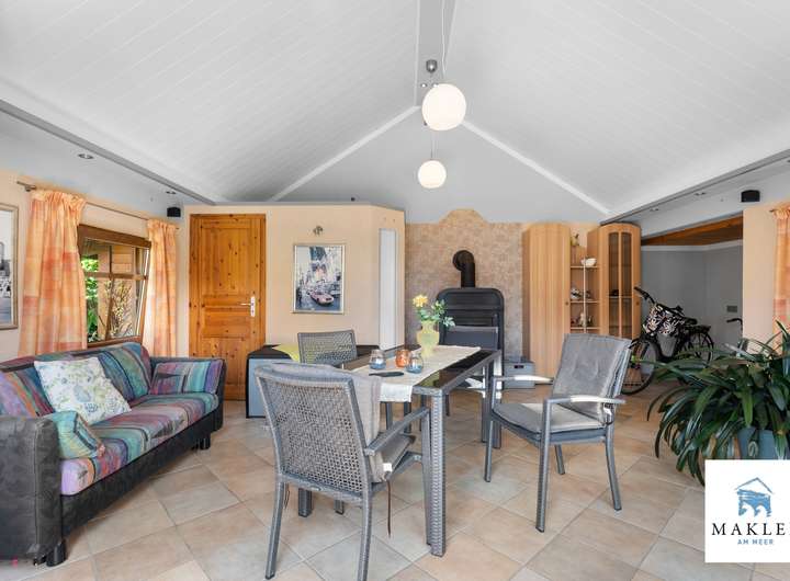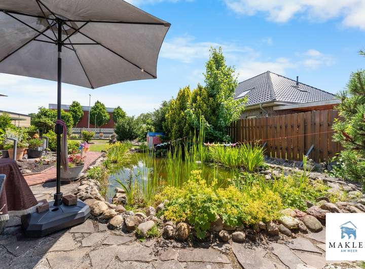 Draußen wartet ein Garten, der mitgewachsen ist. Mit Ecken zum Sitzen, zum Spielen, zum Atmen. Mit einer Teichanlage samt Fischbesatz. Und mit einem ca. 32 m² großen, massiv gebauten Gartenhaus, das nicht nur gefliest und mit Fußbodenheizung versehen ist, sondern sogar einen wasserführenden Kaminofen besitzt. Dieser ist so angeschlossen, dass er die Heizungsanlage im Haupthaus unterstützen kann – eine durchdachte Lösung, die nicht nur gemütlich ist, sondern auch hilft, Energie zu sparen