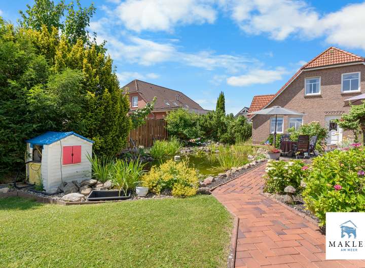 Dieses Friesenhaus in Moordorf wurde 1999 in massiver Bauweise errichtet und steht auf einem rund 1.222 m² großen Grundstück, dass mit viel Liebe zum Detail gestaltet wurde. Es liegt in einer ruhigen Wohnstraße, nur einen Spaziergang entfernt von Einkaufsmöglichkeiten, Schulen, Ärzten und allem, was man täglich braucht.