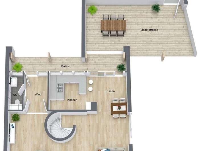 Ein großzügiger Wohnbereich, der viel Tageslicht durchflutet und einen herrlichen Blick auf die umliegende Landschaft bietet, lädt zum Entspannen und Verweilen ein. Vom Wohnbereich aus gelangt man auf einen großzügigen Balkonbereich, der sich ideal für Outdoor-Aktivitäten und gesellige Zusammenkünfte eignet.