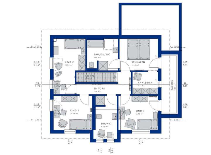 Obergeschoss: Schlafzimmer mit Ankleide, drei schöne Kinderzimmer, großzügiges Kinderbad und riesige Empore.