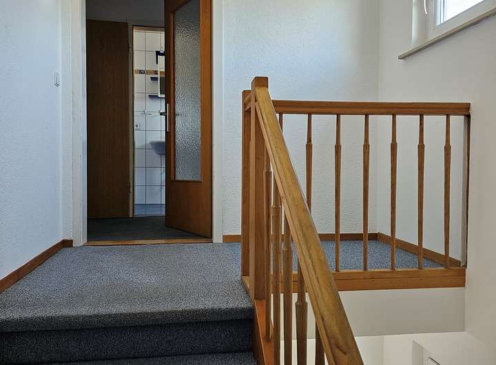 Das DG ist über eine Einschubtreppe im Flur des OG begehbar, bei einem weiteren Dachausbau mit ca. 70m² weiterer Wohnfläche könnte auch das Treppenhaus bis ins DG „verlängert werden“.