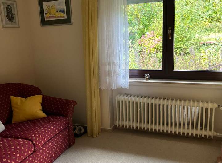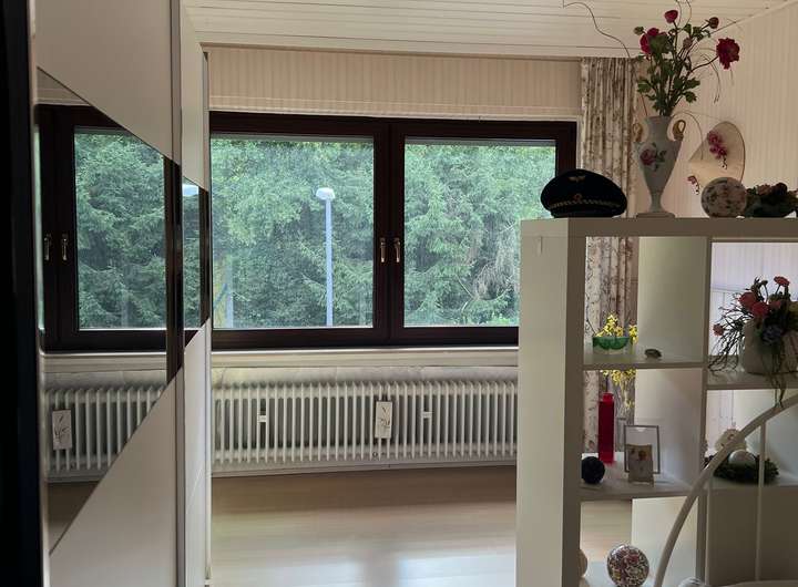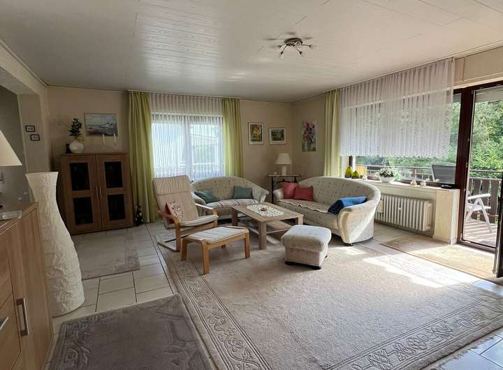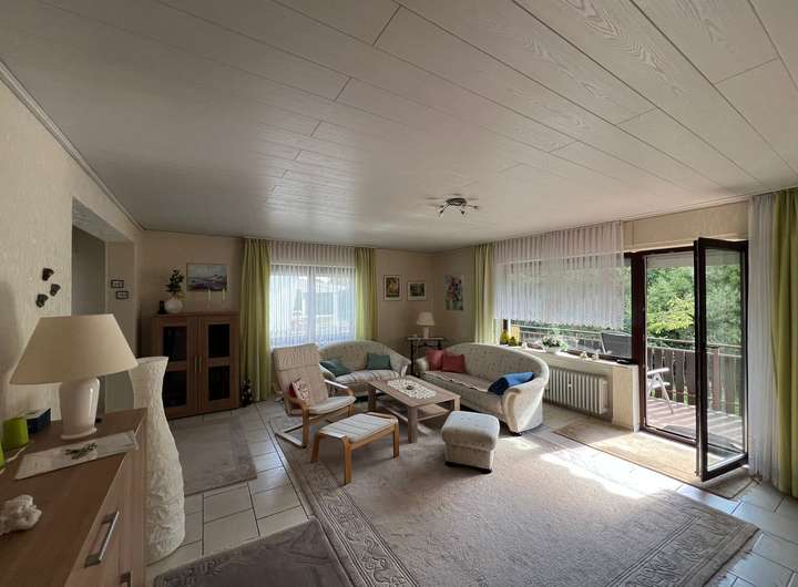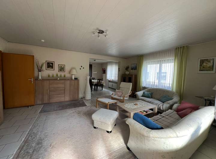 Einfamilienhaus mit viel Platz zum Wohnen und Arbeiten sowie ein Teil zur Kapitalanlage, da die Einliegerwohnung vermietet ist. Im Erdgeschoss dominieren die sehr große Diele, das großzügige Wohnzimmer mit anschließendem Esszimmer und dem großen Balkon. Die große, modern ausgestattete Küche mit vielen Einbauschränken. Drei Zimmer, ein Badezimmer und ein separates Gäste-WC befinden sich ebenso auf dieser Etage. Im Gartengeschoss befinden sich eine Einliegerwohnung mit zwei weiteren Zimmer sowie einem Badezimmer, dieser Teil ist mit einer Terrasse und sep. Eingang. Diese Wohnung ist zur Zeit vermietet. Auf der gleichen Ebene befinden sich ein Heizungsraum und eine Waschküche sowie ein Tankraum für das Heizöl. Alles sehr gepflegt und ordentlich. Großer Garten. Eine Doppelgarage und die Stellplätze vor der Garage gehören ebenfalls dazu. Dieses Haus kann nach der Zusammenlegung der beiden Einheiten zu einem großzügigen Einfamilienhaus mit bis zu 6 Schlafzimmern vergrößert werden. Zur Zeit sind es 2 Einheiten. Die Einliegerwohnung ist an einen solventen Mieter vermietet.