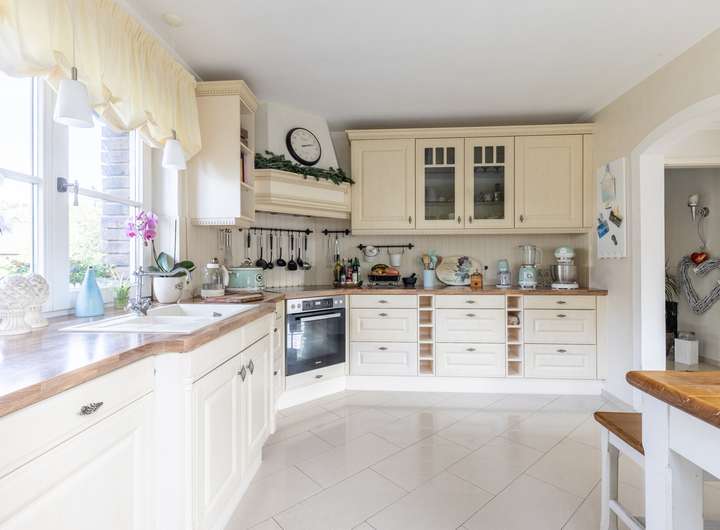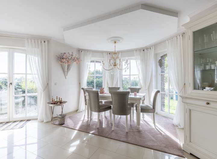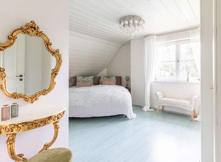 Insgesamt neun Zimmer eröffnen eine Vielzahl an Möglichkeiten. Sieben großzügig geschnittene Schlafzimmer bieten viel Platz für die ganze Familie, Gäste oder individuelle Hobbys. Ergänzt werden sie durch drei geschmackvoll ausgestattete Badezimmer, die Komfort und Alltagstauglichkeit verbinden. Ein separates Gäste-WC im Eingangsbereich sorgt für zusätzliche Bequemlichkeit im täglichen Leben. Ob Kinderzimmer, Homeoffice oder Rückzugsort – die Räume lassen sich flexibel an die persönlichen Bedürfnisse anpassen. Herzstück des Hauses ist der offen gestaltete Wohn- und Essbereich. Mit seinen großen Fensterflächen und dem eleganten Kamin bildet er den Mittelpunkt des täglichen Lebens. An kühlen Abenden sorgt das Kaminfeuer für eine warme, behagliche Atmosphäre, während an sonnigen Tagen der Blick durch die bodentiefen Fenster auf den liebevoll angelegten Garten und die dahinterliegenden Felder schweift. Die nahtlos angrenzende Terrasse erweitert den Wohnraum ins Freie – ein idealer Ort zum Entspannen, für gesellige Grillabende oder für sommerliche Familienfeste unter freiem Himmel.