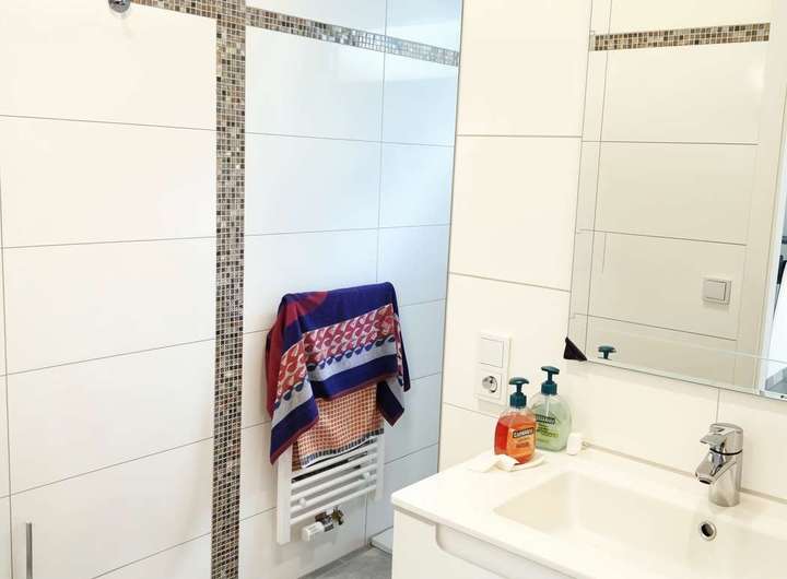 Besonders hervorzuheben sind die hochwertigen Fliesen, die in allen Wohnbereichen bis auf das Wohnzimmer und Schlafzimmern verlegt sind. Die Immobilie ist zudem barrierefrei gestaltet, was sie besonders für alle Generationen geeignet macht.