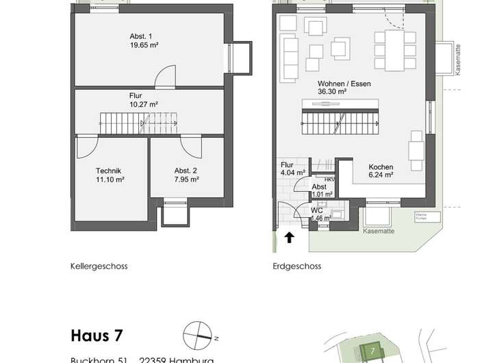 Für höchsten Wohnkomfort sorgt die moderne Haustechnik mit Luft-Wasser-Wärmepumpe und Photovoltaikanlage. Ein weiterer Pluspunkt: Dem Haus ist ein PKW-Stellplatz direkt zugeordnet, der für 17.500 € mit erworben wird – so parken Sie bequem direkt am Haus.