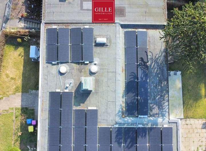 die das gesamte Dach bedeckt. Ein zusätzlicher Speicher ermöglicht eine effiziente Nutzung der gewonnenen Energie und kann zudem als passive Einkommensquelle genutzt werden.